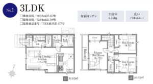 | 1号棟 | 90.18m2 | 72.04m2 | 4,390万円(税込) |